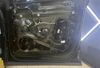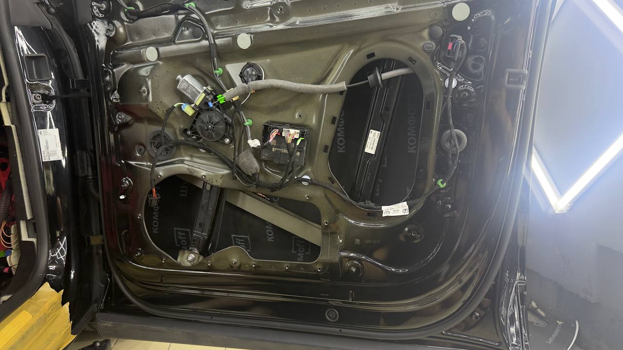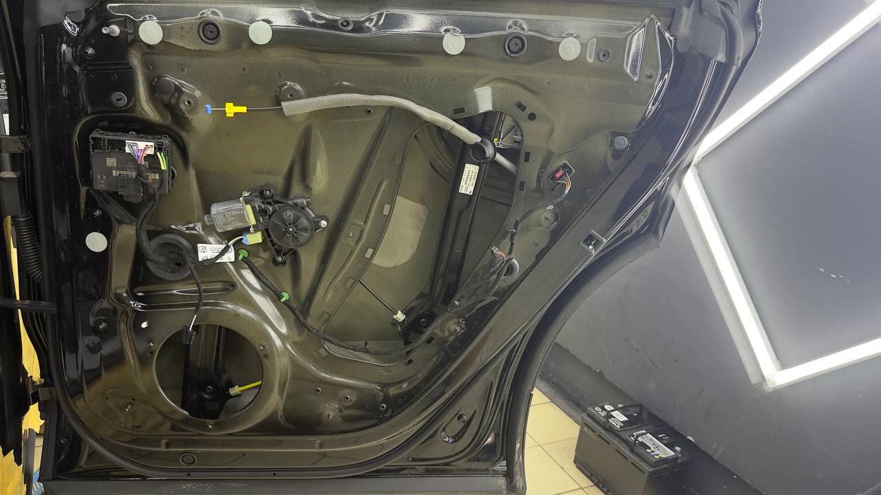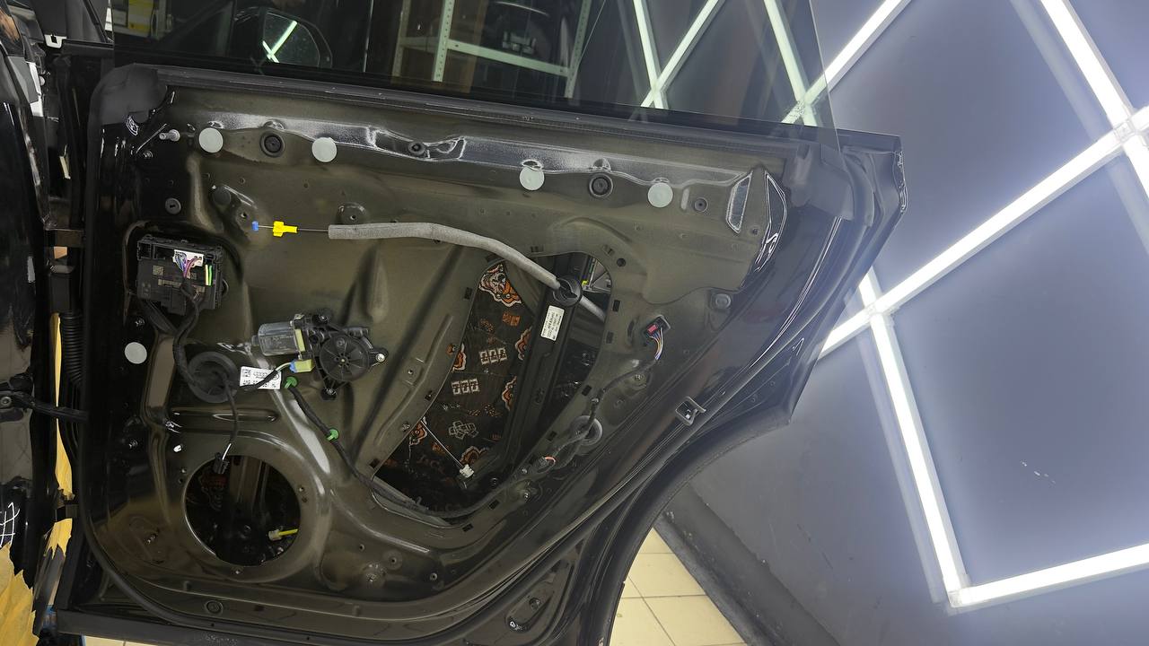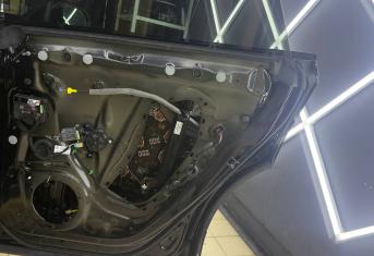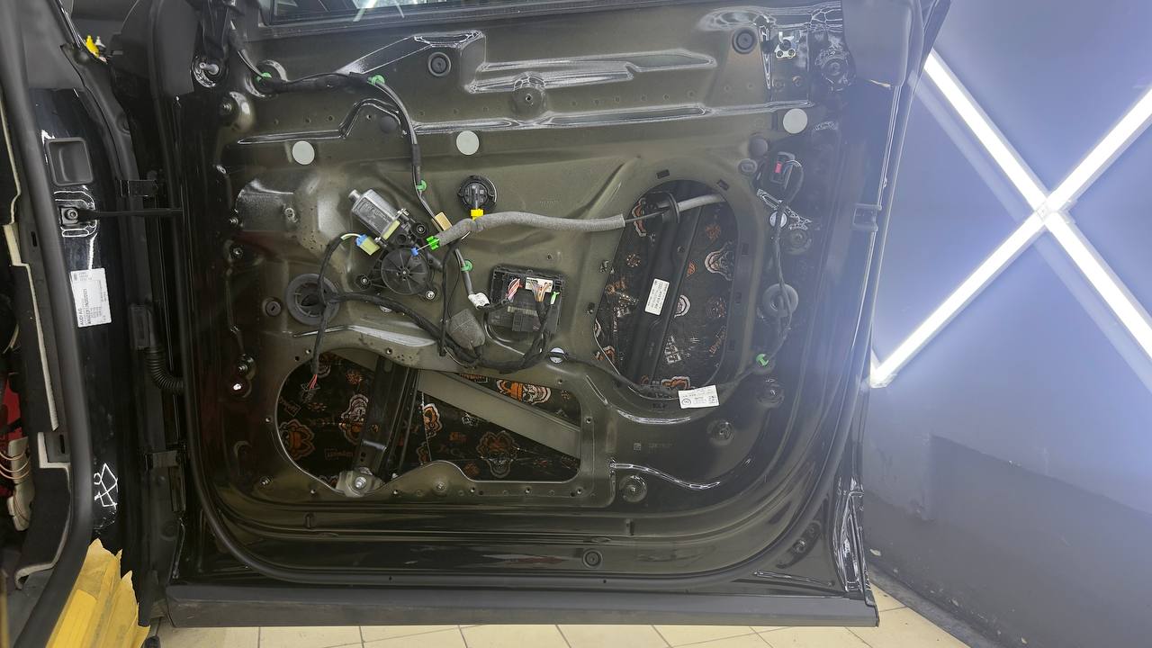 Начинаем работу с разборки дверей, подготовки поверхности и обезжириванию. Все работы по демонтажу пластика выполняются специальным инструментом. Мы гарантируем целостность клипс, креплений и отсутствие различного рода царапин, задиров на обшивках.