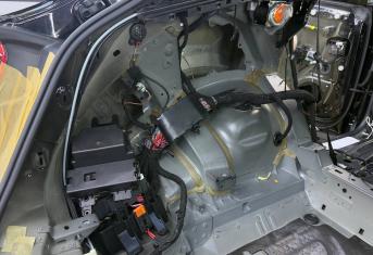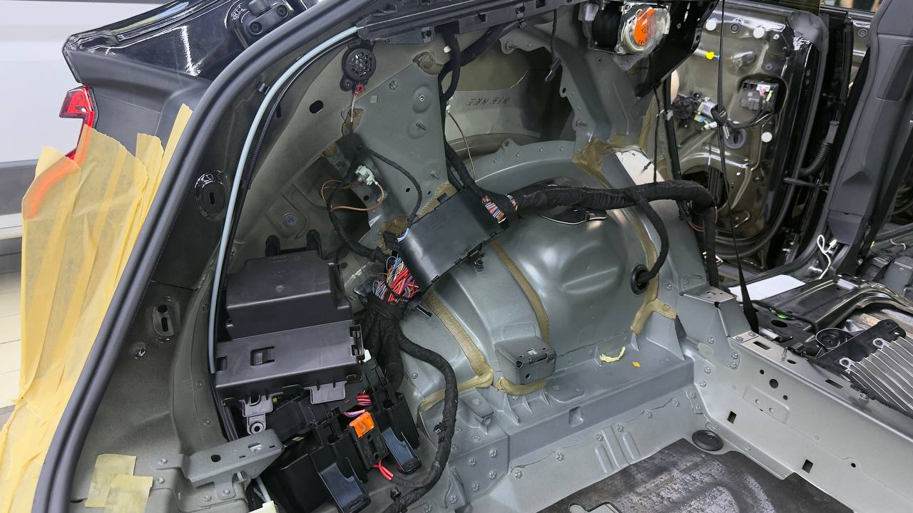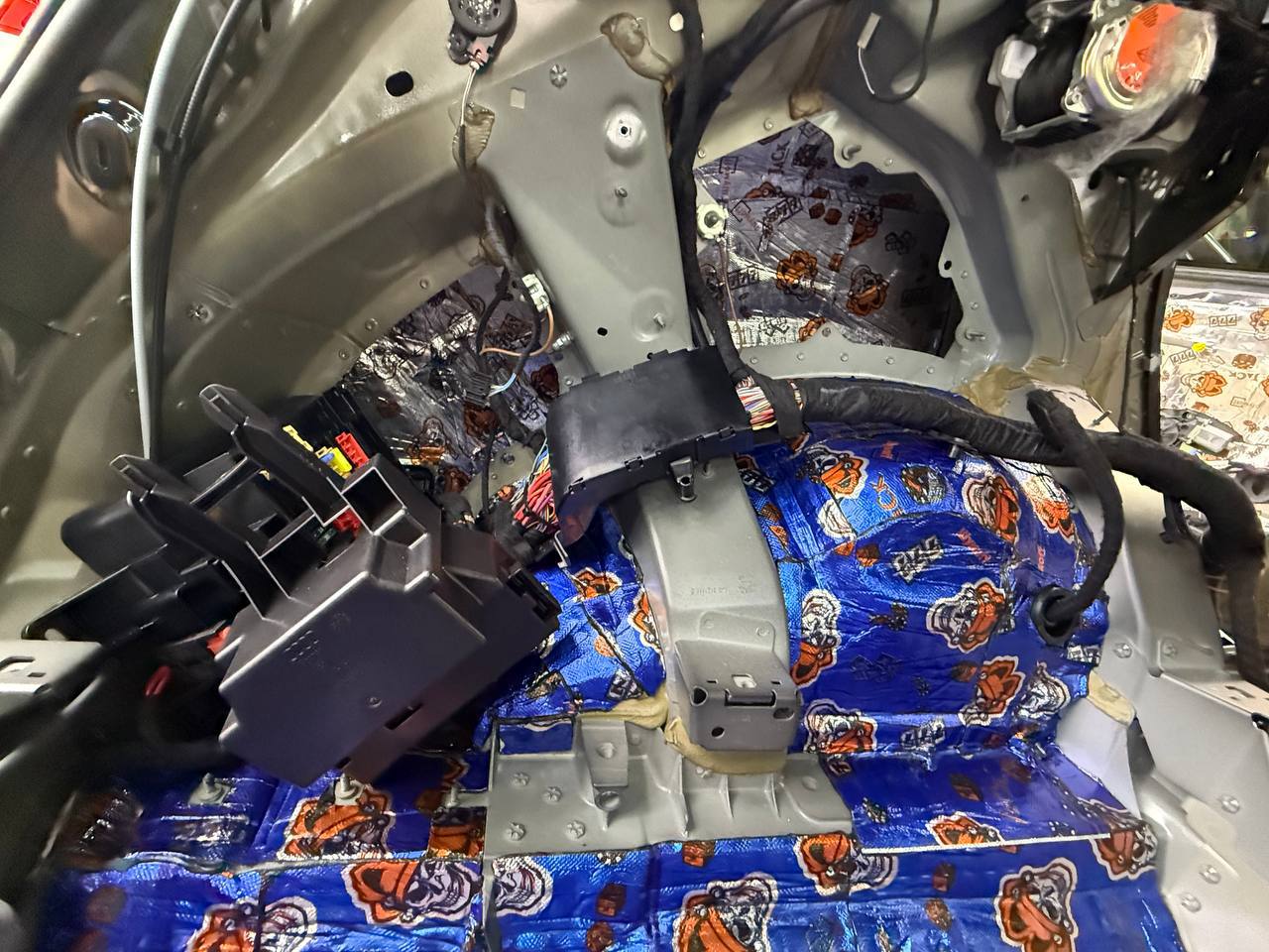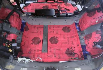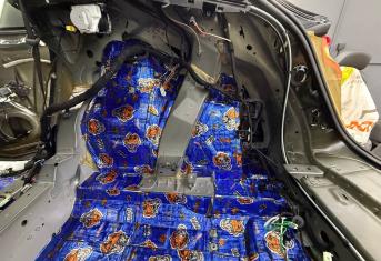 На внешний металл крышки багажника наносим виброизоляцию Шумофф Jack. На обшивку монтируем Шумофф Jack и шумопоглотитель Flex А15. Материалы подобраны по минимальному весу, дабы не создавать излишнюю нагрузку на крышку и она не закрывалась под весом материала. По канту обшивки и клипсы обрабатываем Шумофф Absorber 5. Проводку обрабатываем Шумофф Specific.