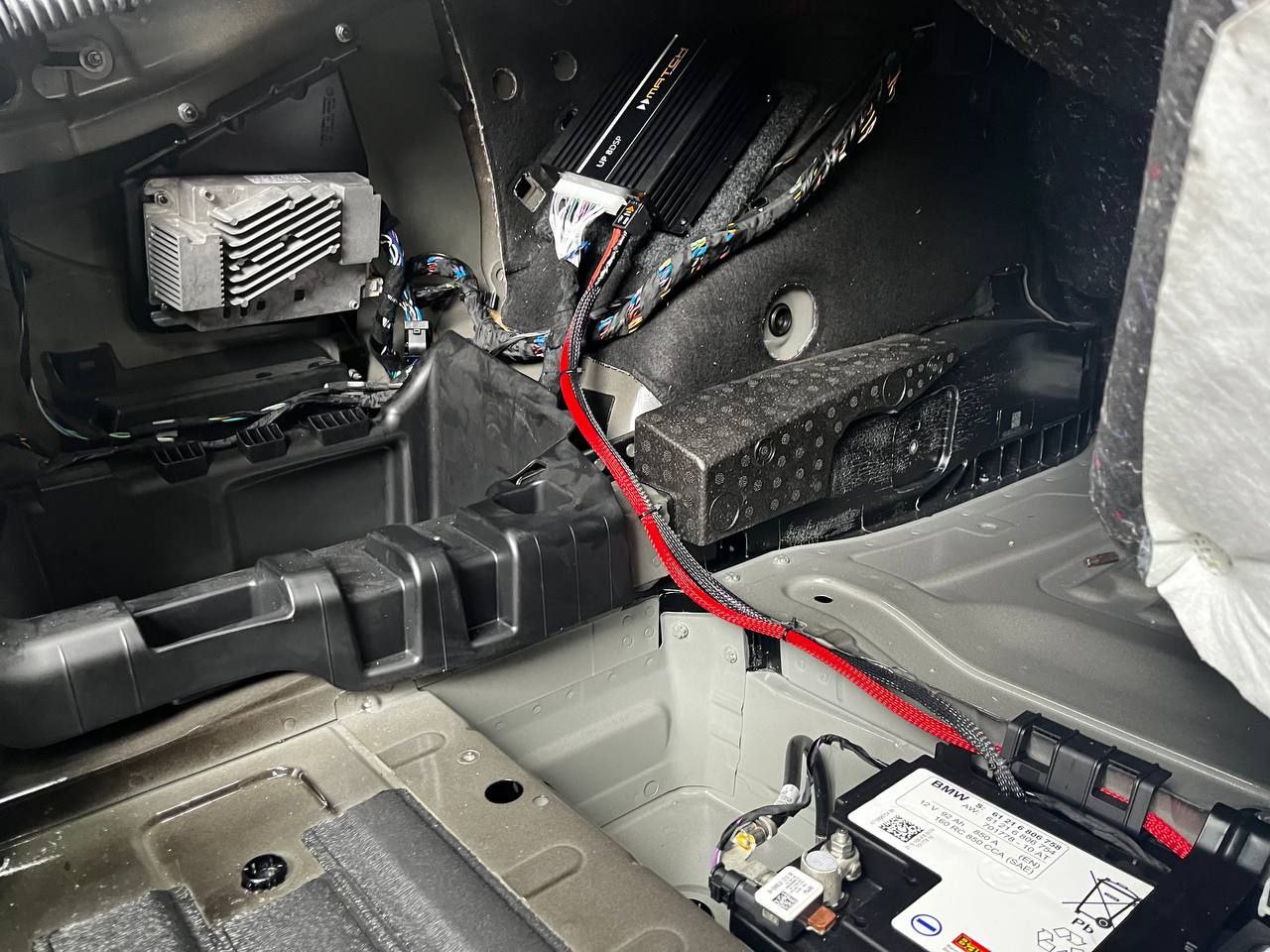 Акустика Match это полная совместимость с BMW. Все разъемы подходят к заводской проводке без пайки и скруток. Можно начать только с усилителя, а потом добавить новые динамики или сабвуфер по желанию. На наш BMW 5 G30 был установлен полный комплект, а именно: усилитель и динамики в торпедо, двери, под сидения.