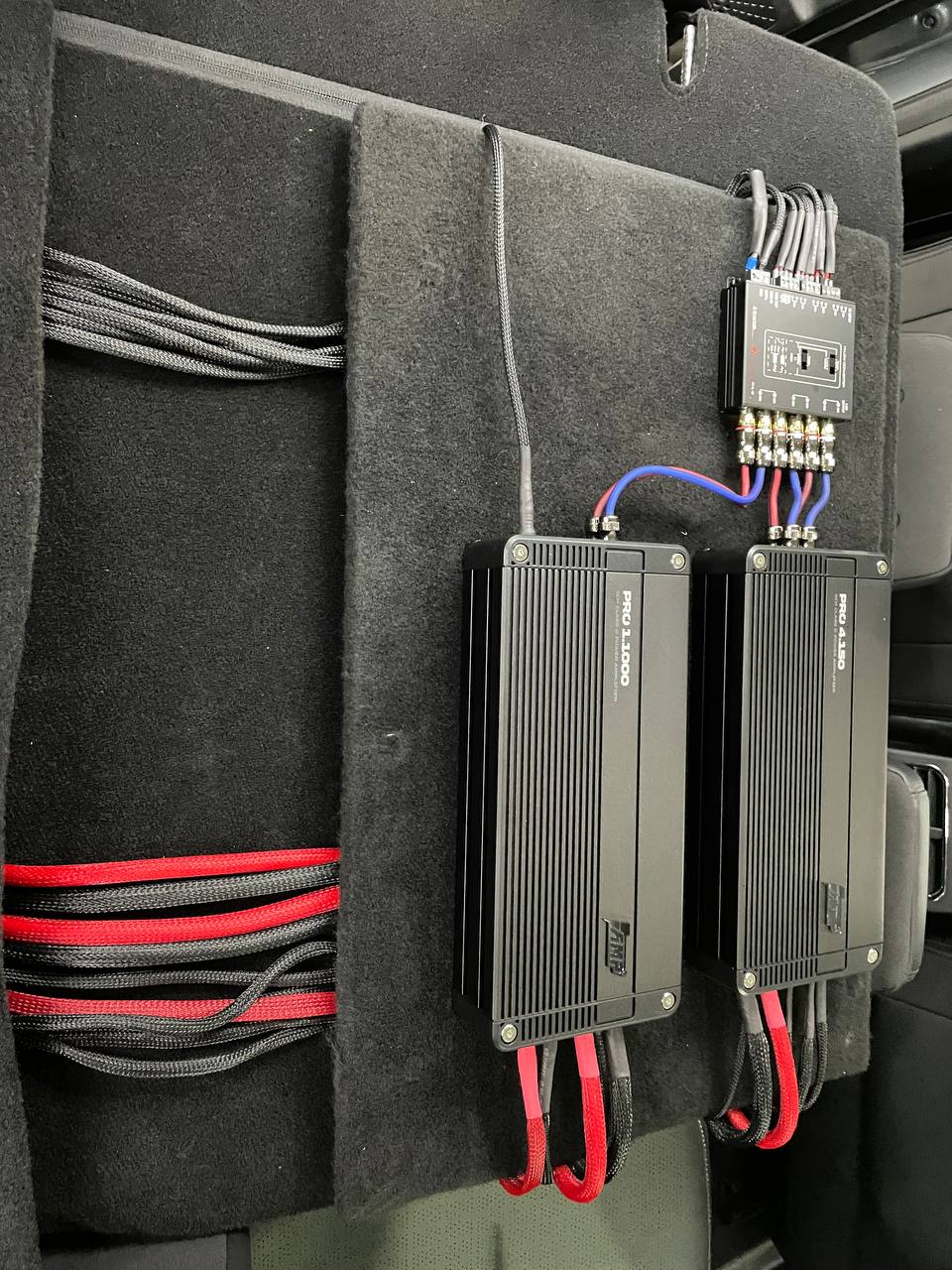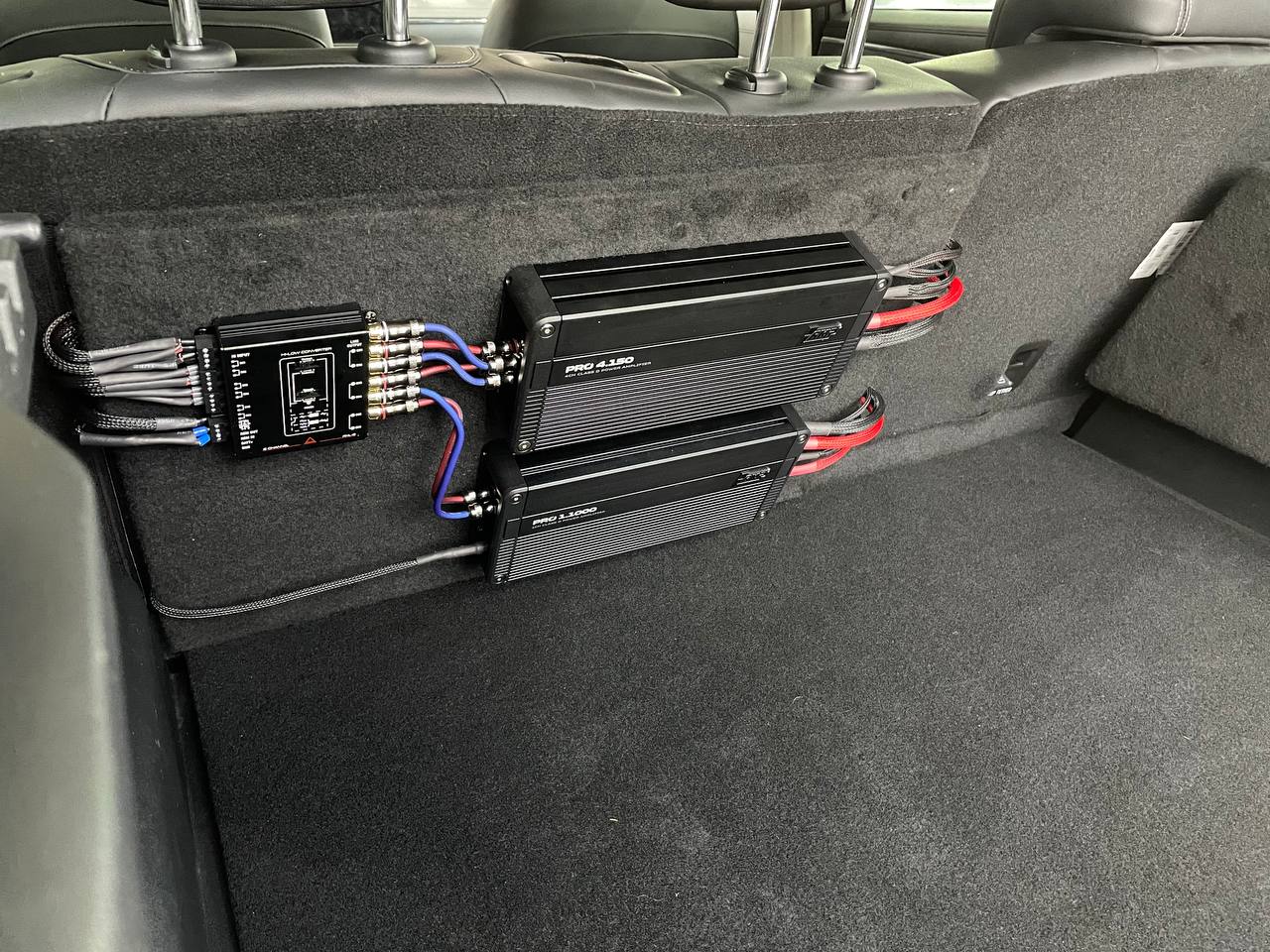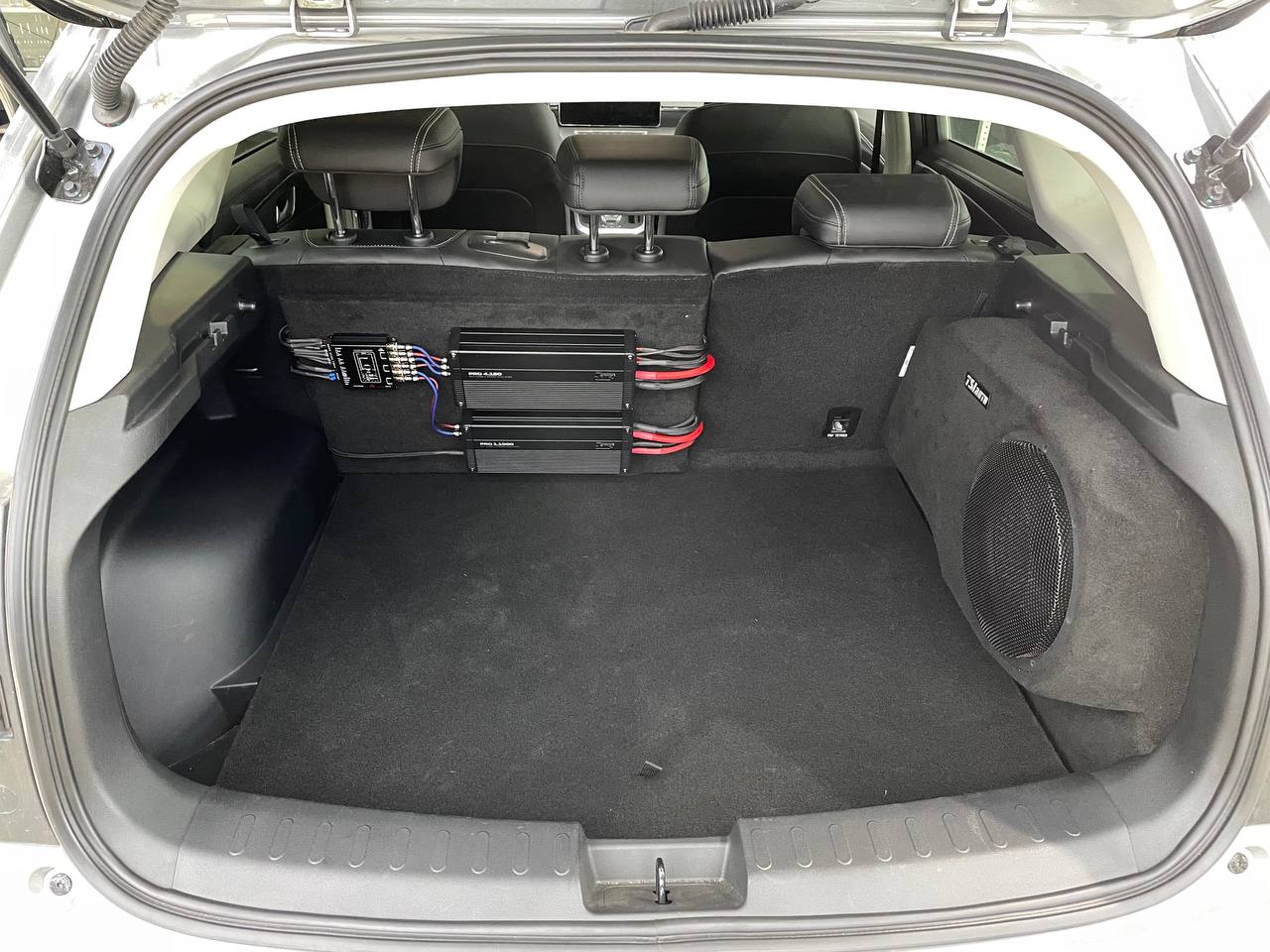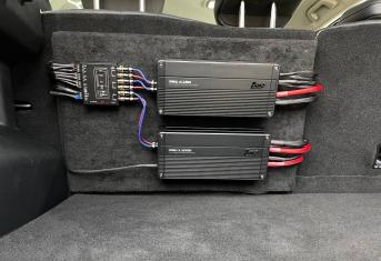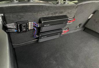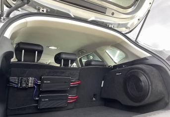 Для установки сабвуфера мы использовали заказной стелс короб в нишу крыла под динамик 10 дюймов, сам динамик от компании Best Balance. Усилители и моноблок смонтировали на спинке заднего ряда сидений. Силовая проводка уложена по штатным местам, с обязательной установкой предохранителя под капотом. Тем самым мы сохранили функционал автомобиля и выиграли немного места в багажнике.