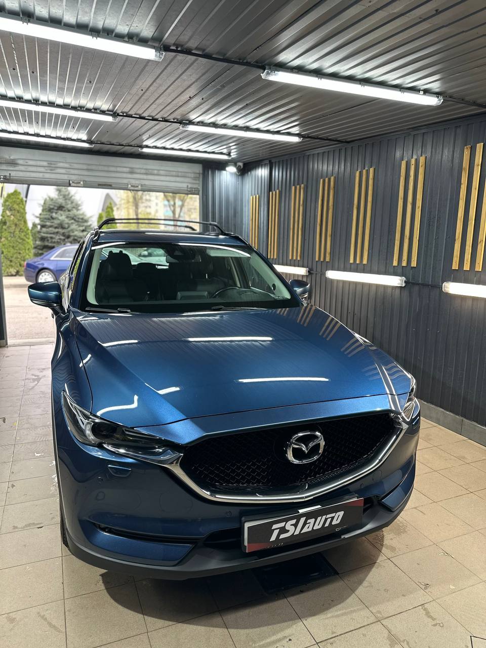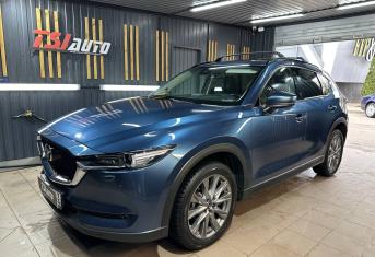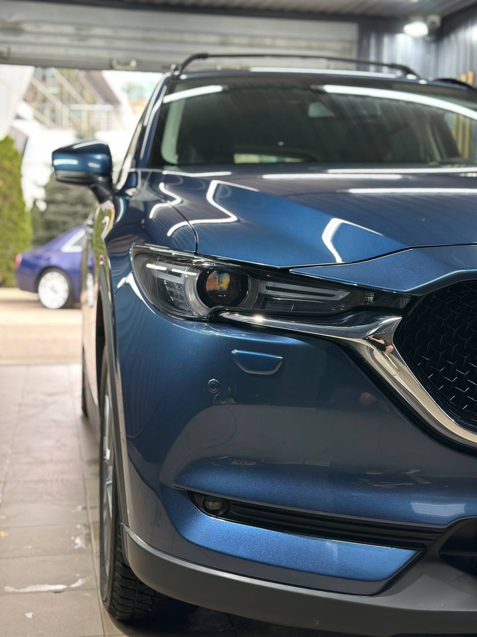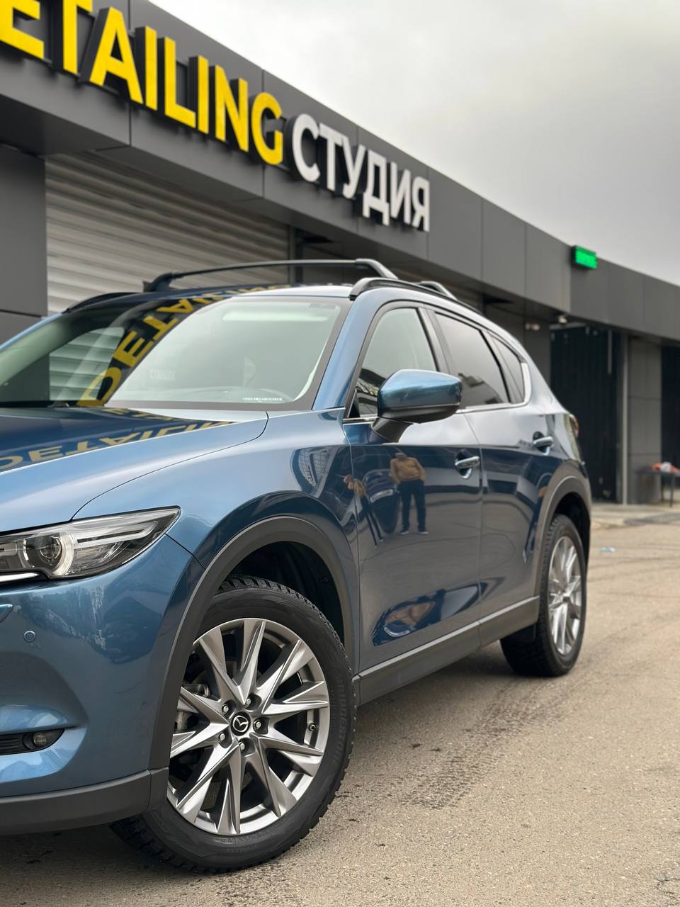 Mazda CX-5 получил глубокий темный цвет и блеск, что видно даже собственное отражение.