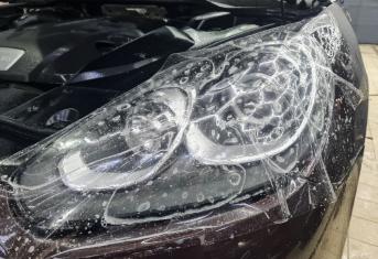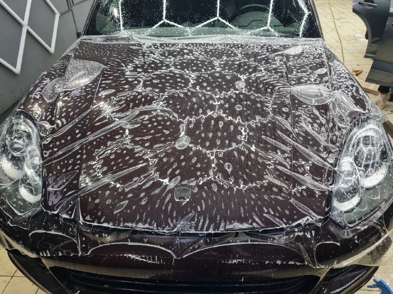 Фото оклейки капота Porsche Cayenne, бампера и фар