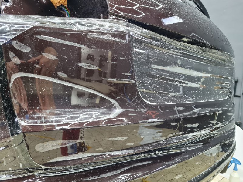 В работе применяем полиуретановую пленку NAR, толщиной 190 микрон. Эта пленка обладает функцией самовосстановления небольших царапин при высокой температуре. Клиент выбрал вариант полной оклейки своего автомобиля.