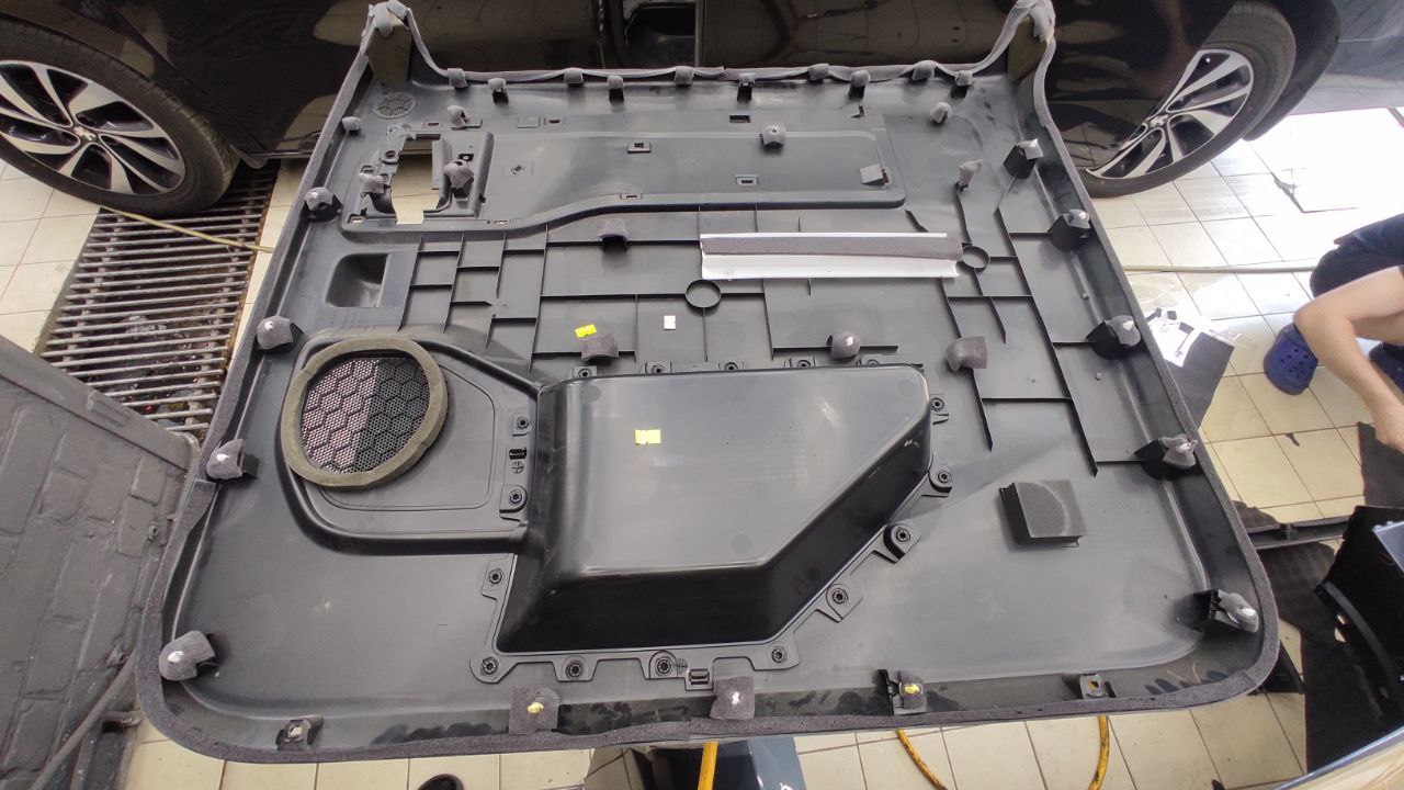 Смотрите наш отчёт о комплексной шумоизоляции салона автомобиля Voyah Dream в пакете «Элит Премиум» без крыши, крыша на данном авто панорамная – участок металла небольшой и тот закрыт усилителями жесткости. Выполнили эту работу мы за 1 рабочий день, благодаря предварительной подготовки материала и слаженной работе специалистов. Стоимость, учитывая все расходные материалы, вы можете уточнить по телефону у наших менеджеров.